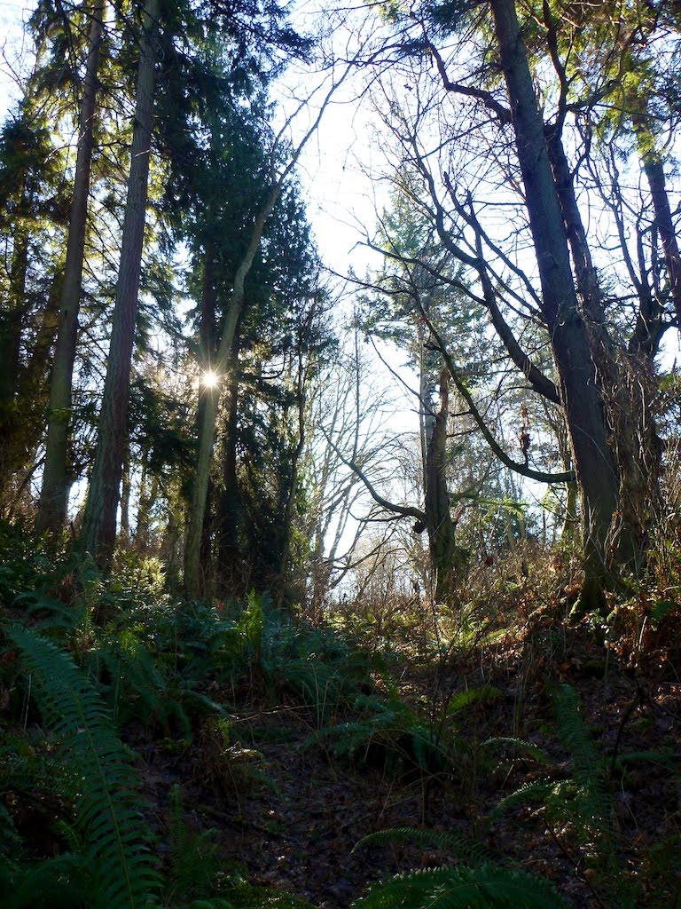 The next day we drove out to Discovery Park after breakfast and good coffee, and a short Skype session with Nina and (a perturbed but adorable) Theo back home. Again we got to see some of the flora and fauna that this region has to offer, much of it very different from home. Giant trees, hummingbirds, a lush and green forest even in winter -- and a great seaside view of white peaks across the fjord.